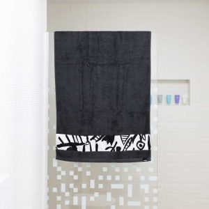 Descripción: Toallas de rizo 100%. Algodón Peinado con cenefa impresa. Envuélvete con el frescor y suavidad de nuestras toallas y da a tu baño un toque de originalidad.